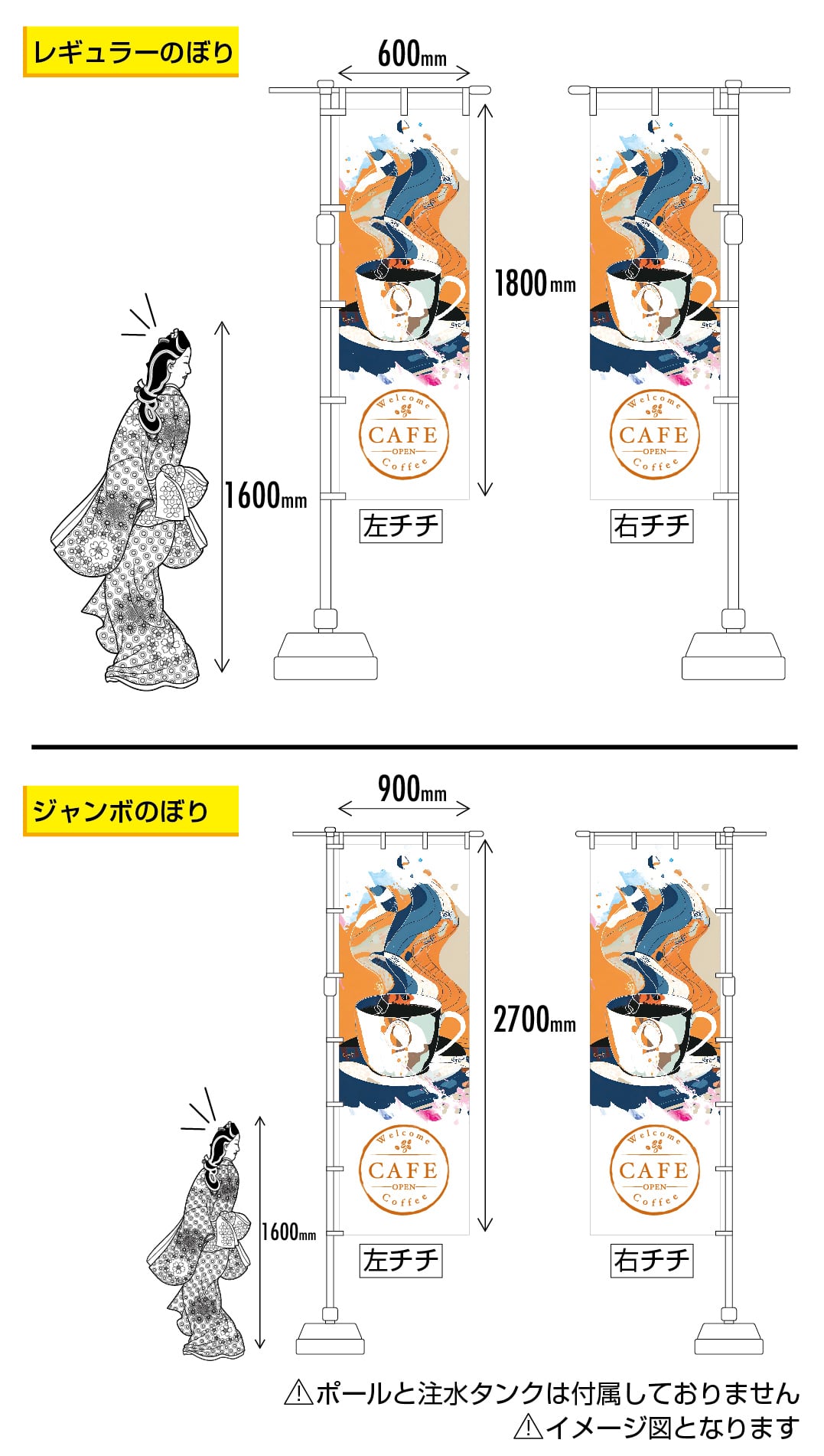 大胆で色鮮やかなグラフィックが、通る人の目を惹きつける「のぼり旗」です。決して街に埋もれないデザインでありながら、洗練された印象もありお店の印象を効果的にアピールできます。店名など入れたりカスタマイズも可能ですので、お気軽にお問い合わせください。
